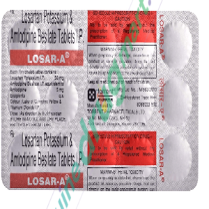 Amlodipine-Losartan 5mg-50mg is a medication used to treat high blood pressure (hypertension). It combines two active ingredients, amlodipine and losartan, which work together to relax blood vessels, allowing blood to flow more easily. This helps to lower blood pressure and reduce the risk of heart attacks, strokes, and kidney problems associated with hypertension.