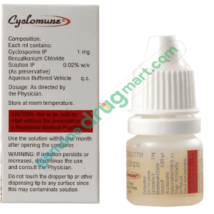 Curious about purchasing Cyclosporine 0.1% Eye Drops 3ml over the counter? In most countries, Cyclosporine 0.1% Eye Drops 3ml is a prescription medication, necessitating a doctor’s approval and cannot be bought OTC. Yet, at genuinedrugmart.com, we provide a solution. Through our online pharmacy, consult with licensed healthcare professionals who can evaluate your condition and issue a prescription if appropriate.