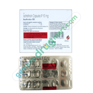 Isotretinoin 10mg is prescribed to treat severe type of acne known as nodular acne that has not responded to any other acne treatments. Nodular acnes are swollen lumps that are formed due to large amounts of sebum (facial oil) production. Isotretinoin is a form of vitamin A that decreases sebum production and thus prevents your face from permanent scarring. This drug belongs to a class of chemical compounds known as retinoids. This medicine may also be used to treat other conditions as determined by your doctor.