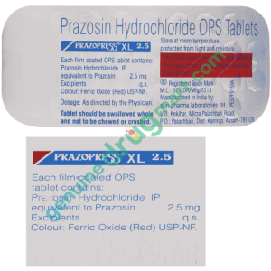 Prazosin ER 2.5mg is an anti-hypertensive medication used to treat high blood pressure (hypertension). It belongs to a group of drugs called alpha-adrenergic blockers. This drug works by relaxing and expanding the blood vessels, thereby improving blood flow. This medicine may also be used to treat other conditions as determined by your doctor.