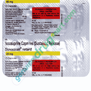Curious about purchasing Isoxsuprine 40mg SR over the counter? In most countries, Isoxsuprine 40mg SR is a prescription medication, necessitating a doctor’s approval and cannot be bought OTC. Yet, at genuinedrugmart.com, we provide a solution. Through our online pharmacy, consult with licensed healthcare professionals who can evaluate your condition and issue a prescription if appropriate.