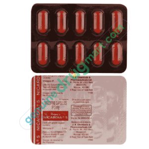 Nifedipine 5mg Tablets is used to treat angina, high blood pressure, and abnormal heart rhythms. It belongs to a class of medications called calcium channel blockers. It blocks the flow of calcium into the muscle cells of the arteries, which relaxes them. This lowers the blood pressure and improves supply of the blood and oxygen to the heart, thus preventing angina attacks. This medicine may also be used to treat other conditions as determined by your doctor.