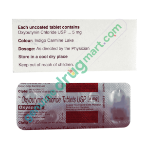 Oxybutynin 5mg is a medication used to treat bladder and urinary conditions such as frequent or urgent urination, incontinence (urine leakage), painful urination and increased night-time urination. This belongs to the class of anticholinergics. This works by relaxing the bladder muscles and reduces spasms.