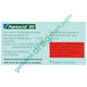 Pantoprazole 20mg is prescribed for the treatment of heartburn, gastroesophageal reflux disease, ulcers, Zollinger–Ellison syndrome, erosive esophagitis, and so on. This drug is a proton pump inhibitor that works by blocking stomach acid production. It is also prescribed in combination with antibiotics such as clarithromycin or amoxicillin. This medicine may also be used to treat other conditions as determined by your doctor.