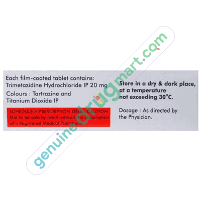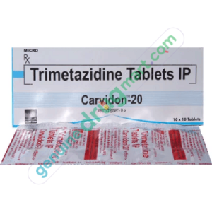 Trimetazidine 20mg Tablets is a drug indicated for the treatment of ischemic heart disease (angina pectoris). It is an anti-ischemic medication that improves left ventricular function in diabetic patients with coronary artery disease. Trimetazidine is also used in the treatment of dizziness and tinnitus. This medicine may also be used to treat other conditions as determined by your doctor.