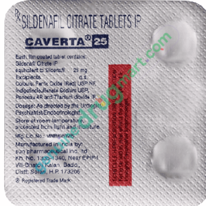 Caverta 25mg is prescribed for the treatment of erectile dysfunction. It is also indicated for pulmonary arterial hypertension (PAH). This medication relaxes muscles in the penis and increases blood flow in it, thereby helping men to achieve and maintain an erection. Caverta 25mg does not protect against sexually transmitted diseases. This medicine may also be used to treat other conditions as determined by your doctor.