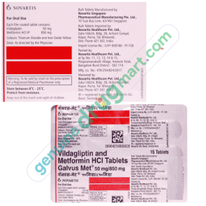 Wondering if you can buy Vildagliptin-Metformin 50mg-500mg without a prescription? Typically, Vildagliptin-Metformin 50mg-500mg requires a doctor’s prescription for purchase. However, at genuinedrugmart.com, we offer a streamlined process. Through online consultations with our licensed healthcare professionals, you can obtain a prescription if deemed suitable. Connect with our healthcare team today to initiate your consultation and receive the treatment you need.